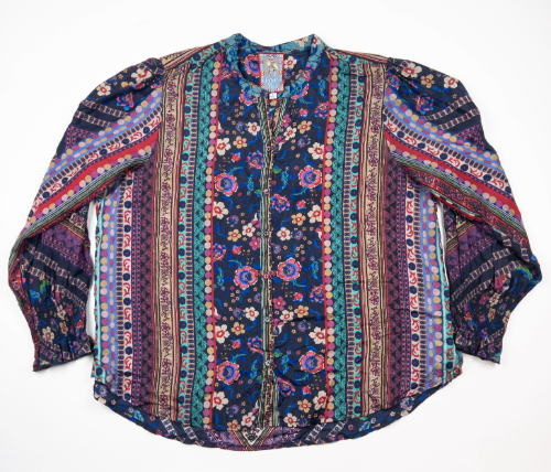 Johnny Was Cruz Tamisha Silk Blouse Women's Large Floral Print Button-Front Boho